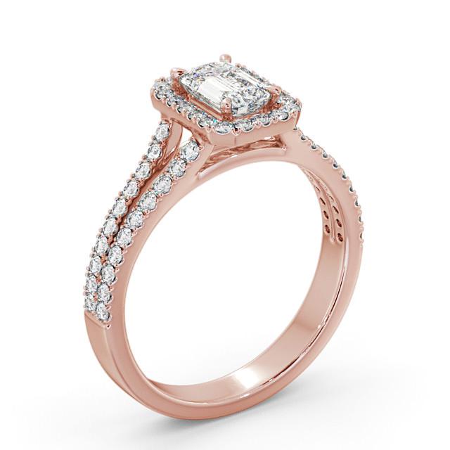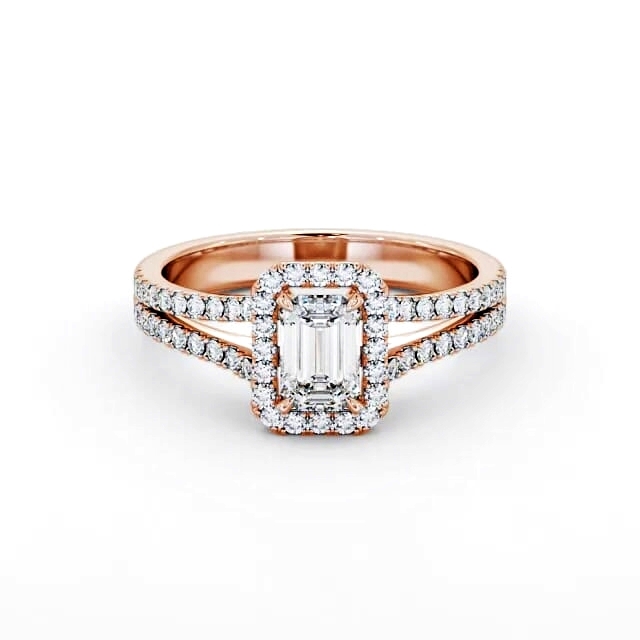 Halo Emerald Diamond Split Band Engagement Ring 18K Rose Gold | Jamila
