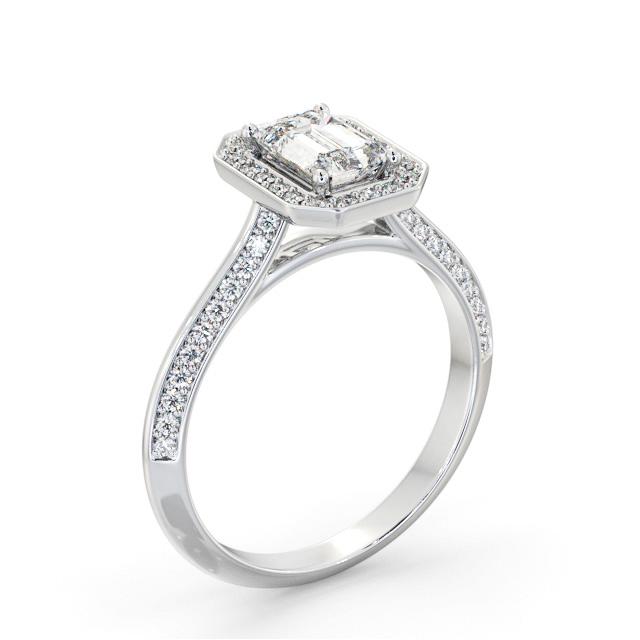 Halo Emerald Diamond with Knife Edge Band Ring 18K White Gold | Grayson