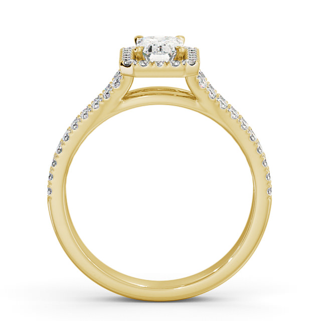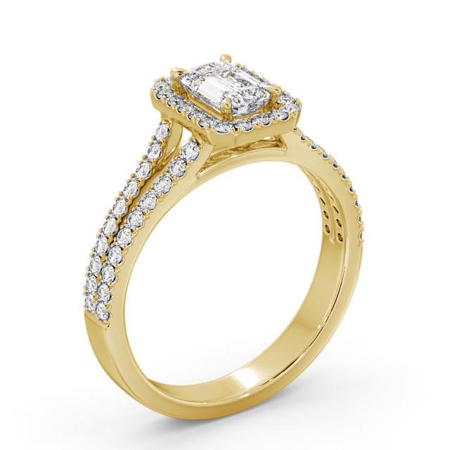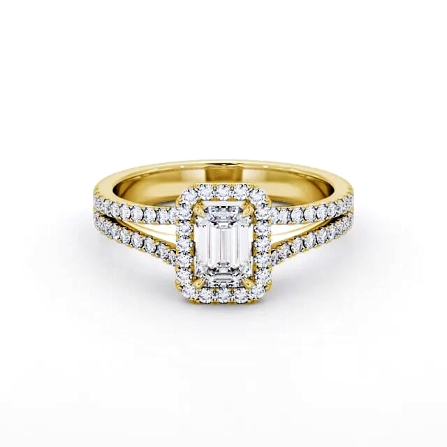 Halo Emerald Diamond Split Band Engagement Ring 9K Yellow Gold | Jamila