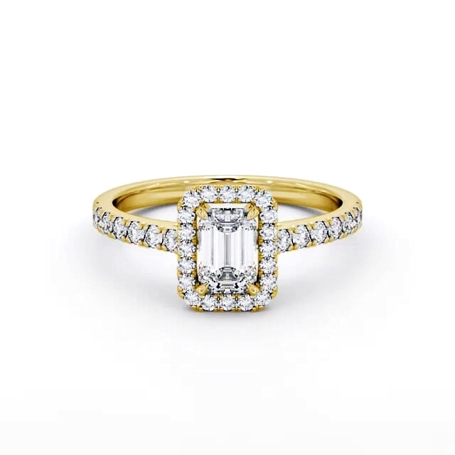Halo Emerald Diamond Classic Engagement Ring 9K Yellow Gold | Kamrie