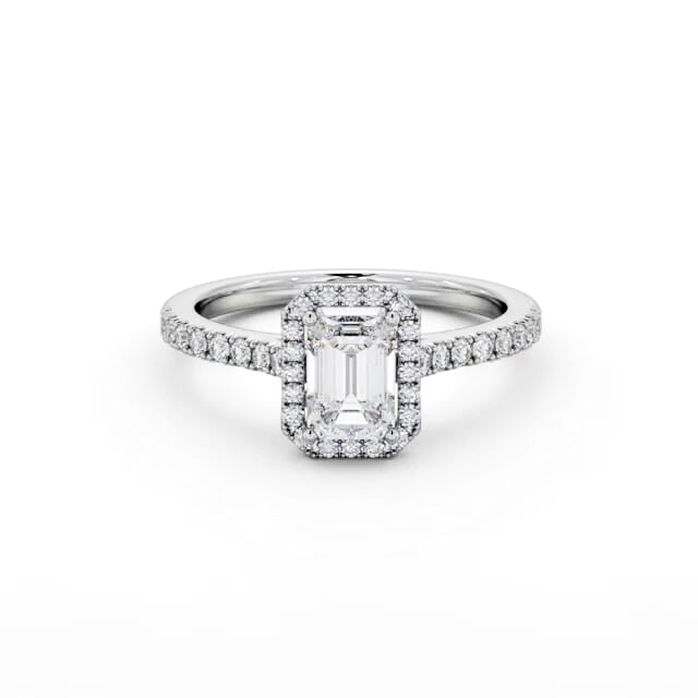 Halo Emerald Diamond Classic Engagement Ring Palladium | Demetria