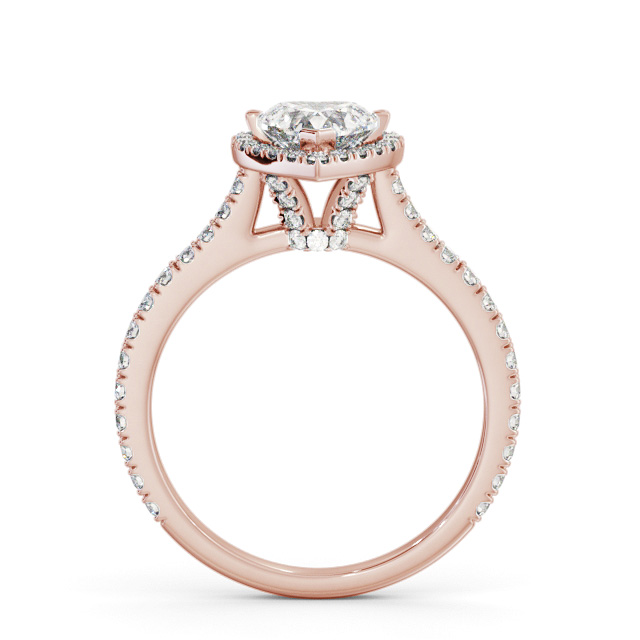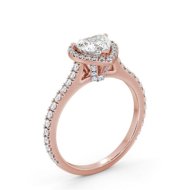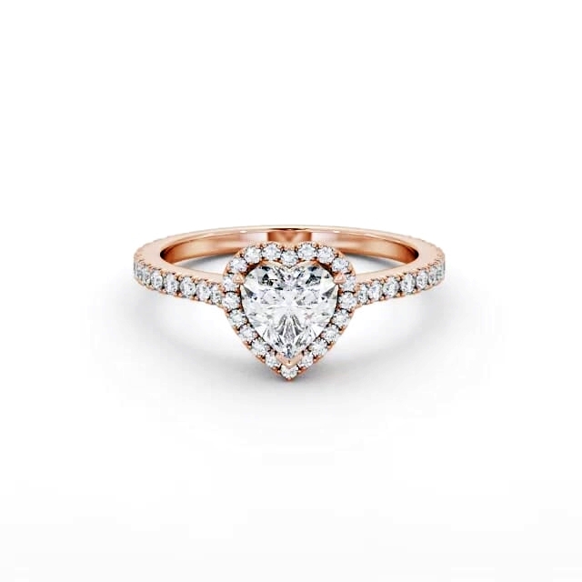 Haddie diamond engagement ring with a halo 18K Rose Gold setting. Beauty to behold, a single heart shaped centre diamond, small round diamonds around the centre and extra small round diamonds on the rail and shoulders completes this majestic ring. Smaller diamonds will be of VS1 Clarity and F Colour as standard. This ring is available in a range of metal options and your choice of natural or lab grown diamonds. We offer a free design service for any customised changes that you may require.