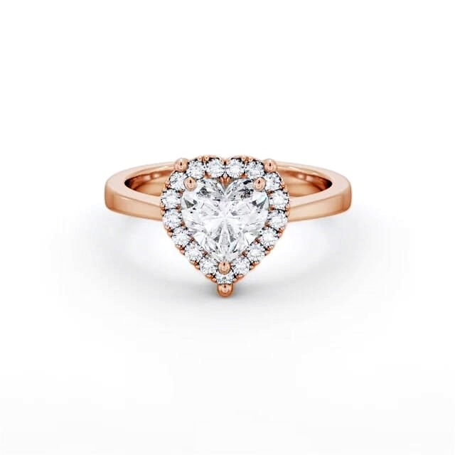 Pippa diamond engagement ring with a halo 18K Rose Gold setting. Beautiful as it is bold, this ring features a heart shaped diamond at the centre, surrounded by a halo of smaller round diamonds. Smaller diamonds will be of VS1 Clarity and F Colour as standard. This ring is available in a range of metal options and your choice of natural or lab grown diamonds. We offer a free design service for any customised changes that you may require.
