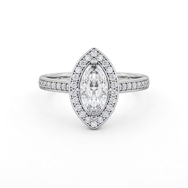 Halo Marquise Diamond Traditional Engagement Ring 9K White Gold | Venice