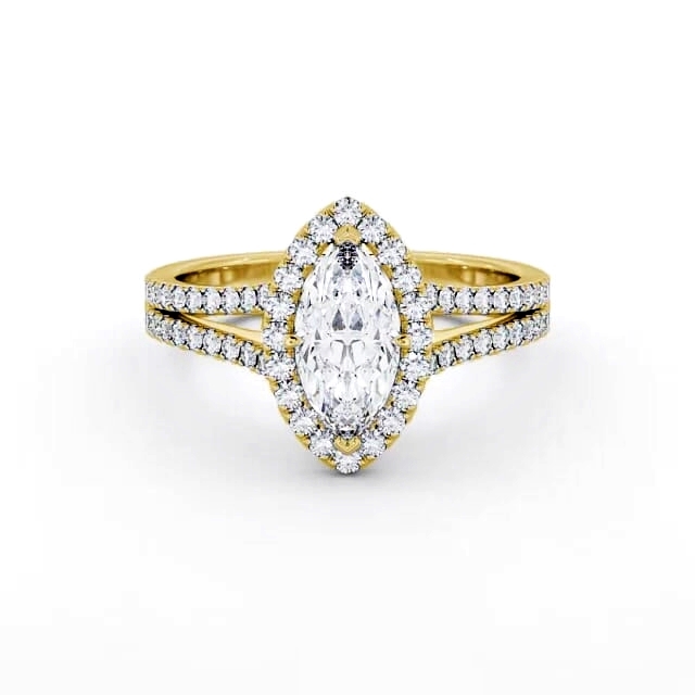 Halo Marquise Diamond Split Band Engagement Ring 9K Yellow Gold | Gionna