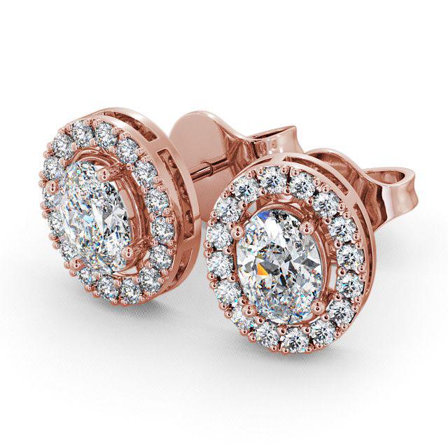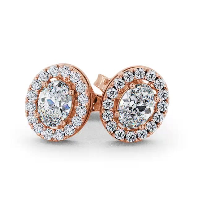 Halo Oval Diamond Earrings 18K Rose Gold | Aleena