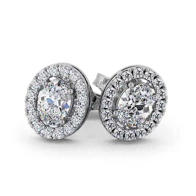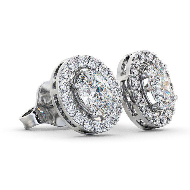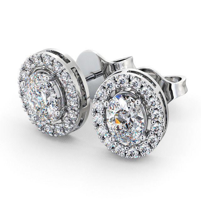 Halo Oval Diamond Earrings 18K White Gold | Aleena