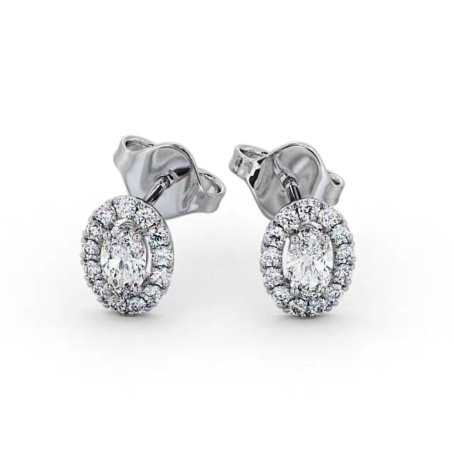 Halo Oval Diamond Classic Earrings 18K White Gold | Ivie
