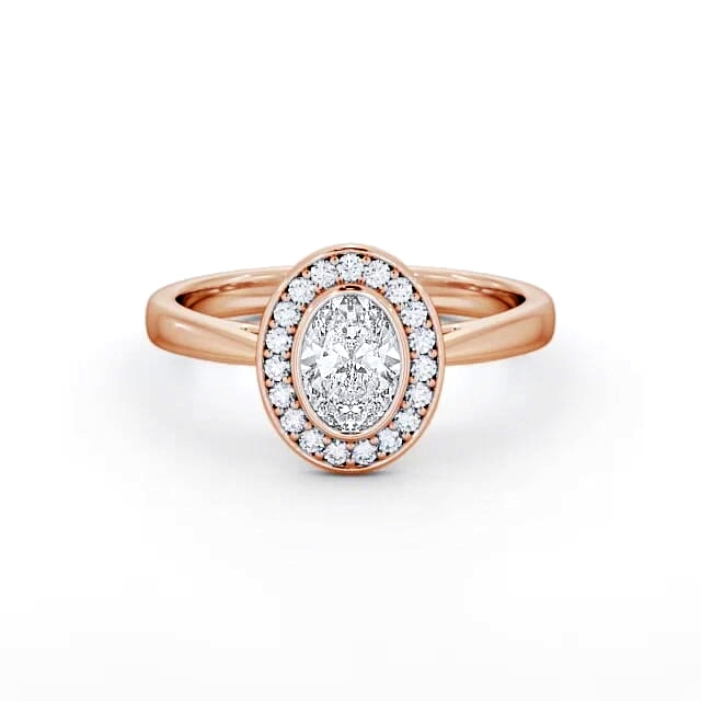 Halo Oval Diamond Bezel Set Engagement Ring 18K Rose Gold | Shanvi