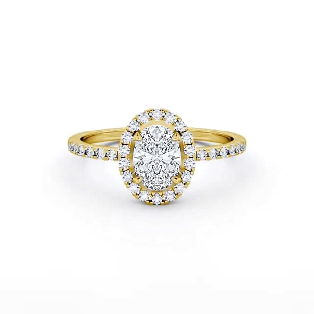 Halo Oval Diamond Low Setting Engagement Ring 18K Yellow Gold | Larissa