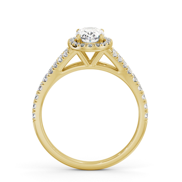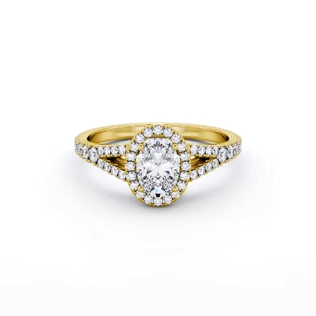 Halo Oval Diamond Split Band Engagement Ring 18K Yellow Gold | Maribel