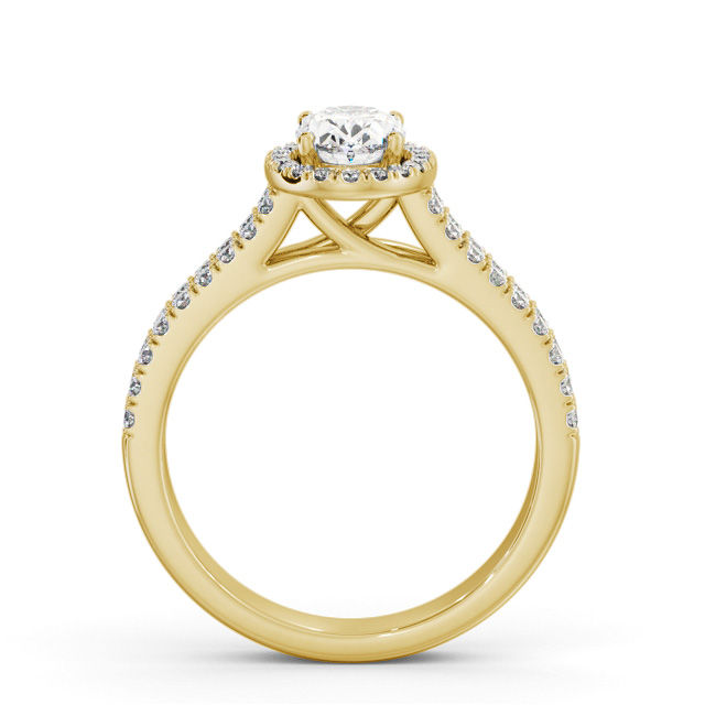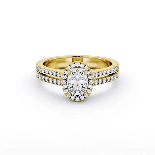 Halo Oval Diamond Split Band Engagement Ring 18K Yellow Gold | Stefanie