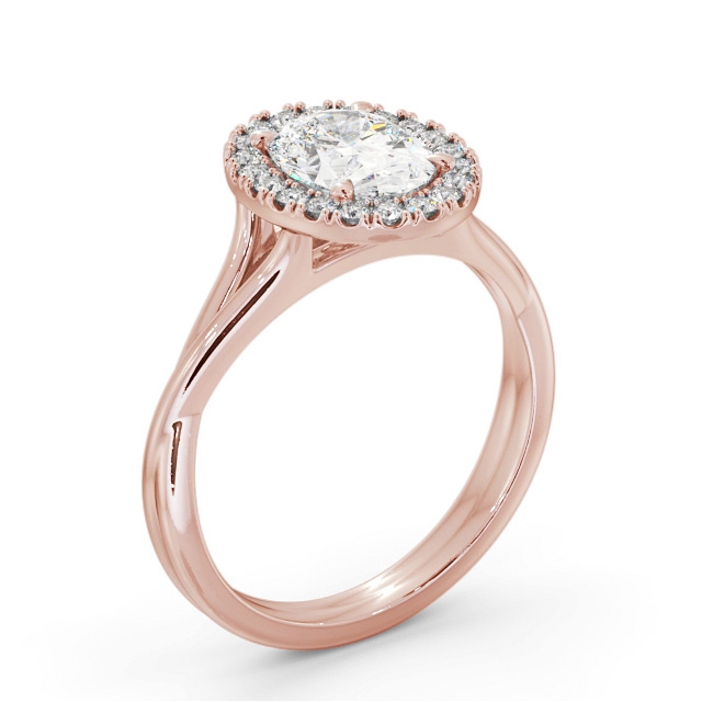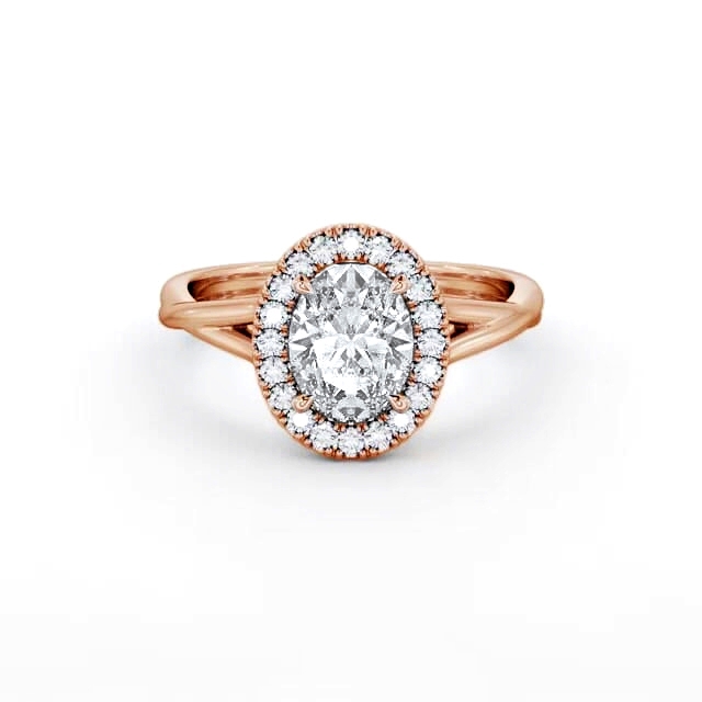 Arianne diamond engagement ring with a halo 9K Rose Gold setting. Effortless elegance, this classic ring features a stunning oval shaped diamond framed by a halo of smaller round diamonds. A highly polished split band adds extra charm. Smaller diamonds will be of VS1 Clarity and F Colour as standard. This ring is available in a range of metal options and your choice of natural or lab grown diamonds. We offer a free design service for any customised changes that you may require.