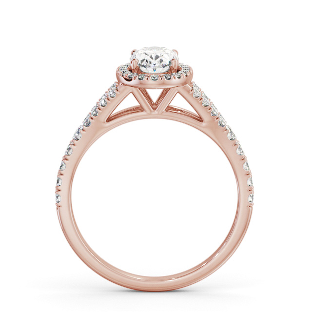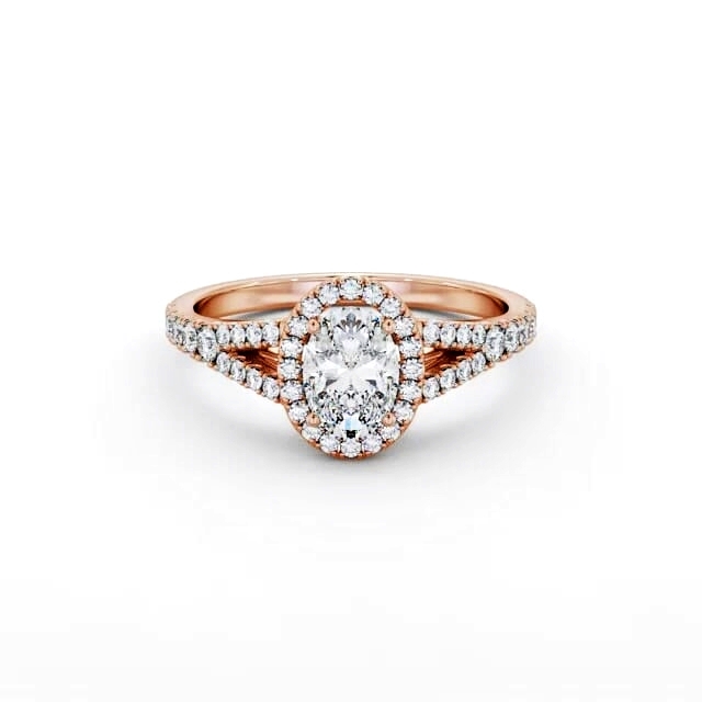 Halo Oval Diamond Split Band Engagement Ring 9K Rose Gold | Maribel