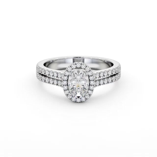 Halo Oval Diamond Split Band Engagement Ring Platinum | Stefanie