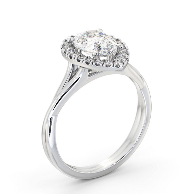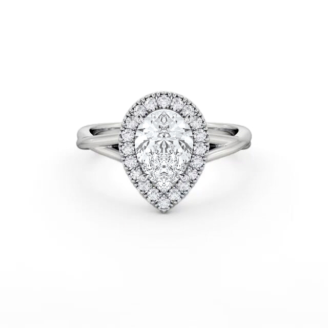Janelle diamond engagement ring with a halo 18K White Gold setting. Stylishly sparkling, this charming ring features a pear shaped diamond at the centre and small round diamonds arranged in beautiful halo frame. Smaller diamonds will be of VS1 Clarity and F Colour as standard. This ring is available in a range of metal options and your choice of natural or lab grown diamonds. We offer a free design service for any customised changes that you may require.