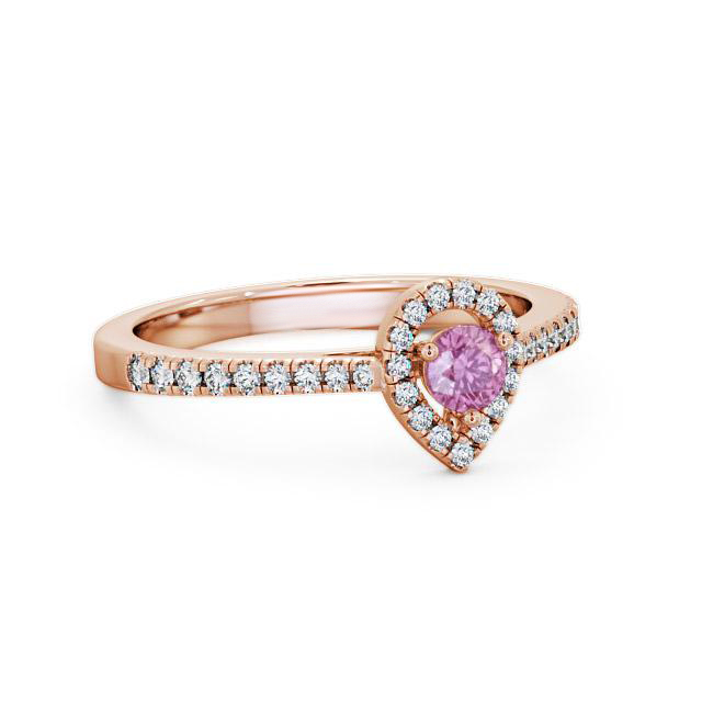 Rivka halo pink sapphire and diamond 0.37ct ring in a 18K Rose Gold setting. This gorgeous ring glitter with a 0.20 Carat central round pink sapphire gemstone framed by a pear shaped halo of sparkling round diamonds and additional diamond-lined shank. Diamond weighs 0.17 Carat total weight. This ring is available in a range of metal options with AAA grade gemstone. We offer a free design service for any customised changes that you may require.