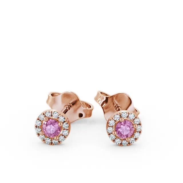 Halo Pink Sapphire and Diamond 0.40ct Earrings 18K Rose Gold | Addisen