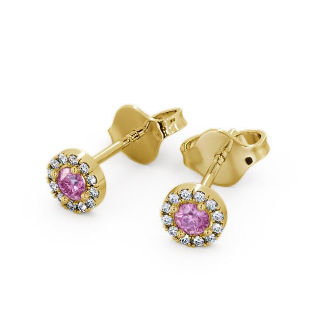 Halo Pink Sapphire and Diamond 0.40ct Earrings 9K Yellow Gold | Addisen