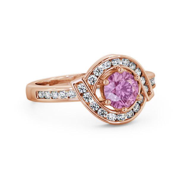 Lenna halo pink sapphire and diamond 0.91ct ring in a 18K Rose Gold setting. This designer ring boasts a stunning 0.65 Carat round pink sapphire gemstone in the centre encircled by channel set sparkling round diamonds. Additional round diamonds flow down on either side of the shank, total diamonds weighs 0.26 Carat. This ring is available in a range of metal options with AAA grade gemstone. We offer a free design service for any customised changes that you may require.