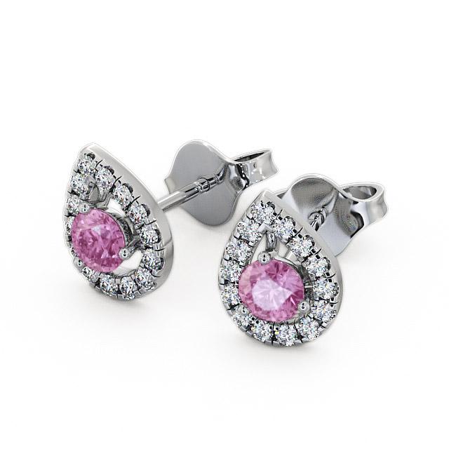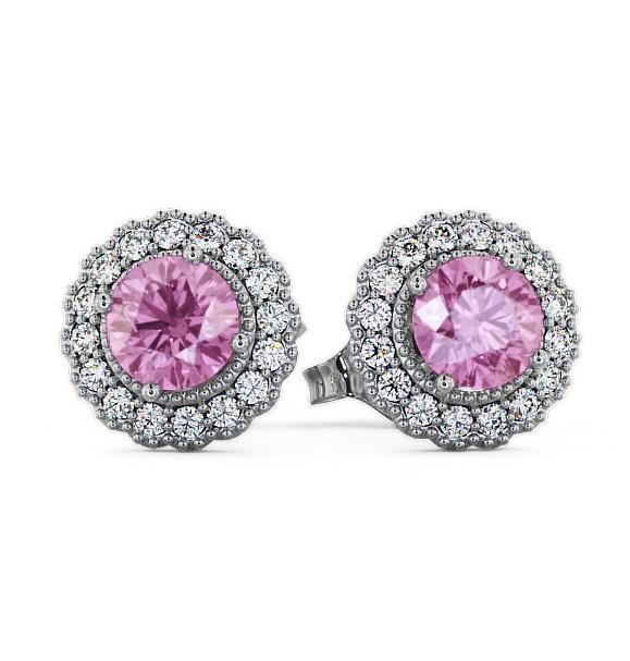 Halo Pink Sapphire and Diamond 0.96ct Earrings 9K White Gold | Brexley