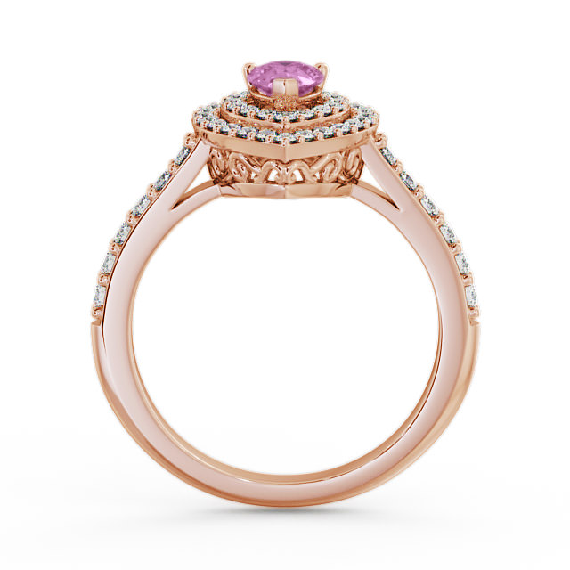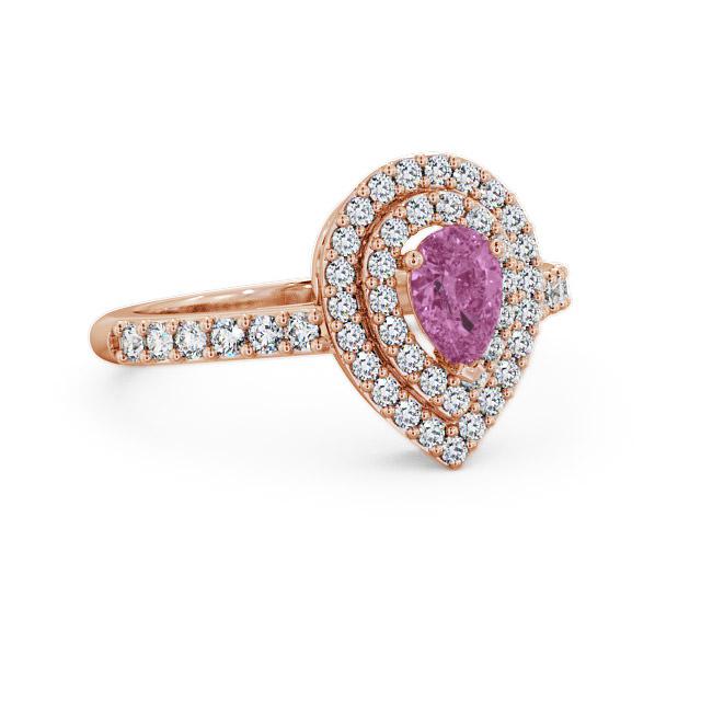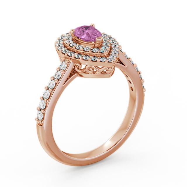 Tracy halo pink sapphire and diamond 0.97ct ring in a 18K Rose Gold setting. This delightful ring features a beautiful 0.50 Carat pear shaped pink sapphire in the centre framed by 0.47 Carat total weight of round diamonds on a double halo and down each shoulders. This ring is available in a range of metal options with AAA grade gemstone. We offer a free design service for any customised changes that you may require.