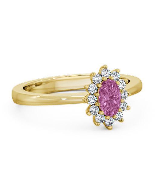 Halo Pink Sapphire and Diamond 0.97ct Ring 9K Yellow Gold | Tracy
