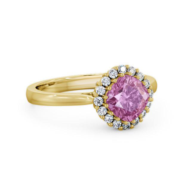 Halo Pink Sapphire and Diamond 1.46ct Ring 9K Yellow Gold | Maribella
