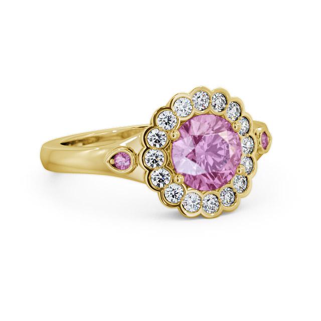 Halo Pink Sapphire and Diamond 1.69ct Ring 9K Yellow Gold | Emmalin