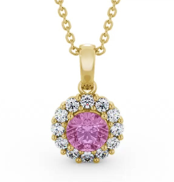 Halo Pink Sapphire and Diamond 1.90ct Pendant 18K Yellow Gold | Kensie