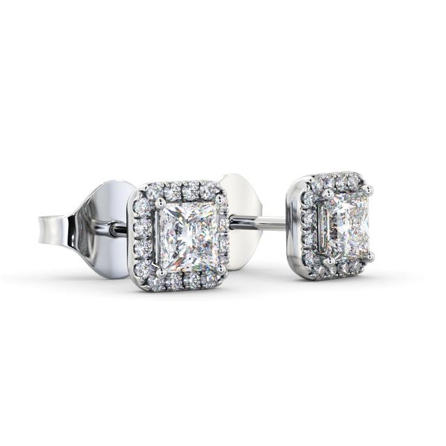 Halo Princess Diamond Earrings 9K White Gold | Evana