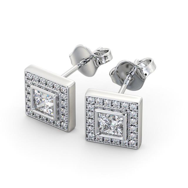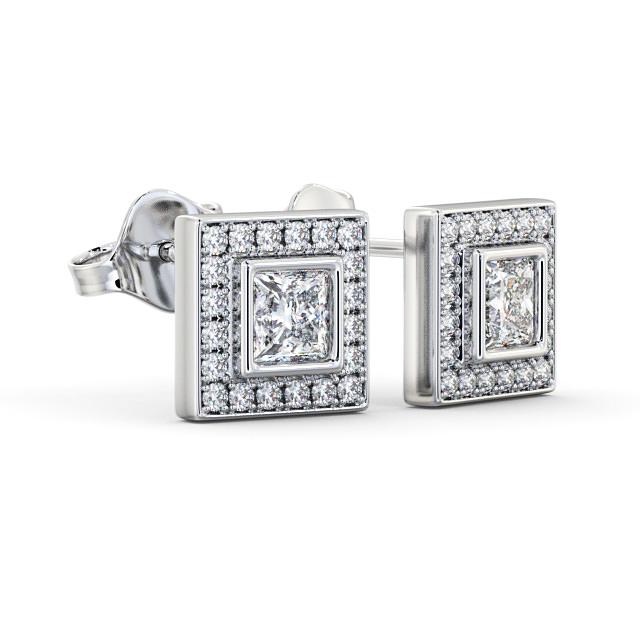 Halo Princess Diamond Bezel and Channel Earrings 9K White Gold | Razan