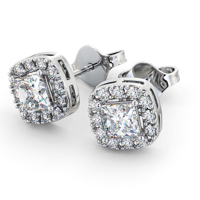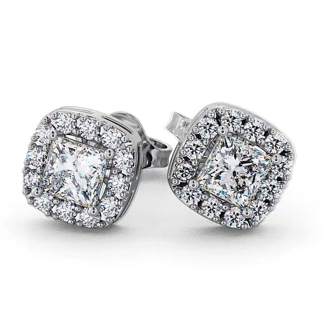 Halo Princess Diamond Earrings 9K White Gold | Yuri