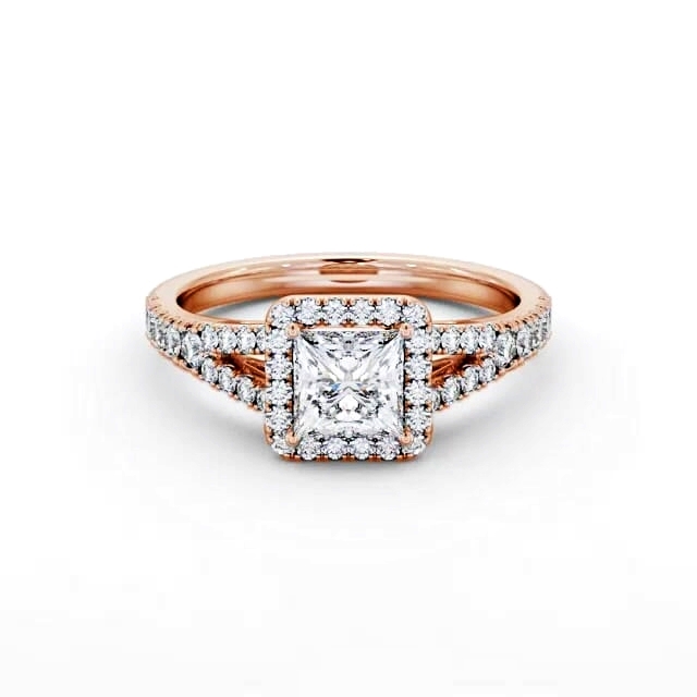 Halo Princess Diamond Split Band Engagement Ring 18K Rose Gold | Mayla
