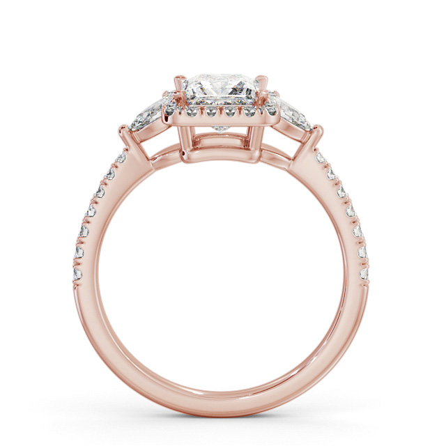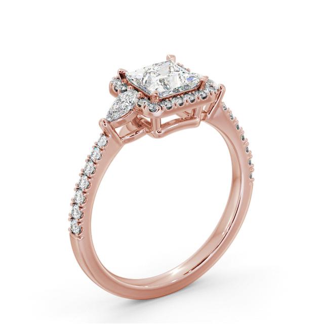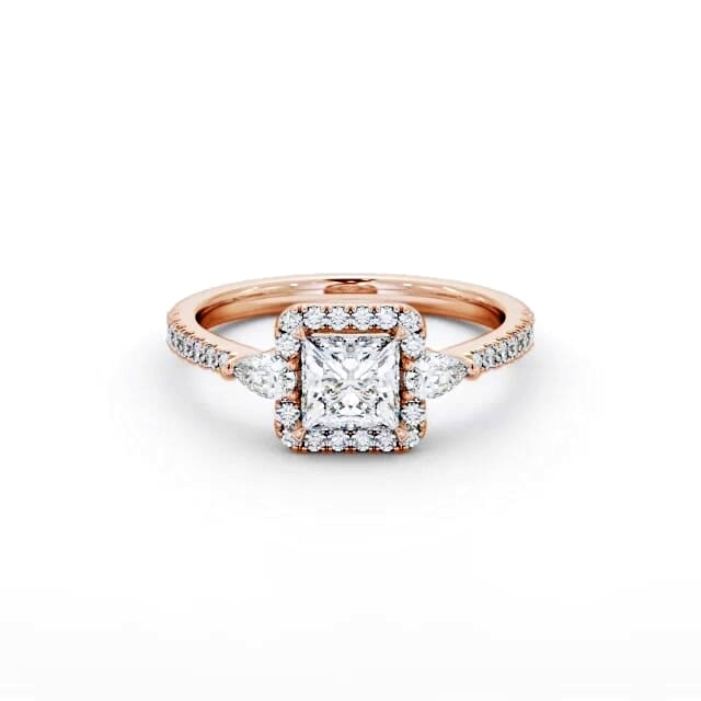 Yurasa diamond engagement ring with a halo 18K Rose Gold setting. Pretty and delightful ring style, gleaming halo of small round diamonds reveal a princess shaped centre diamond and two pear shaped accents diamonds at the centre along with additional small round diamond embedded sleek band. Smaller diamonds will be of VS1 Clarity and F Colour as standard. This ring is available in a range of metal options and your choice of natural or lab grown diamonds. We offer a free design service for any customised changes that you may require.