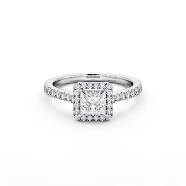 Halo Princess Diamond Classic Engagement Ring 18K White Gold | Alissa