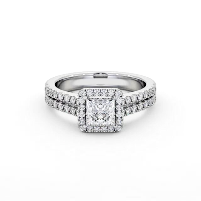Halo Princess Diamond Split Band Engagement Ring 18K White Gold | Chantal