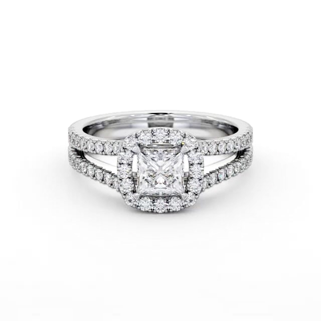 Halo Princess Diamond Split Band Engagement Ring 18K White Gold | Iris