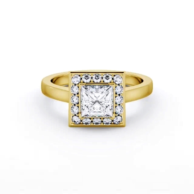 Halo Princess Diamond Engagement Ring 18K Yellow Gold | Aloni