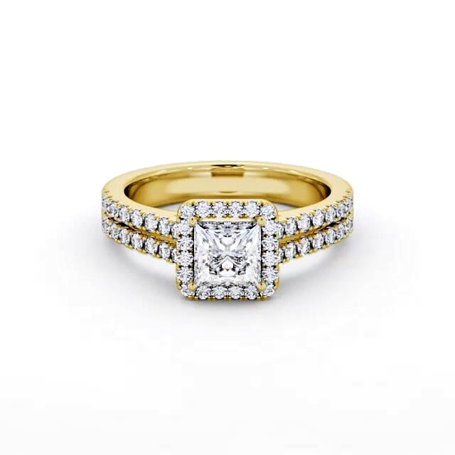 Halo Princess Diamond Split Band Engagement Ring 9K Yellow Gold | Chantal