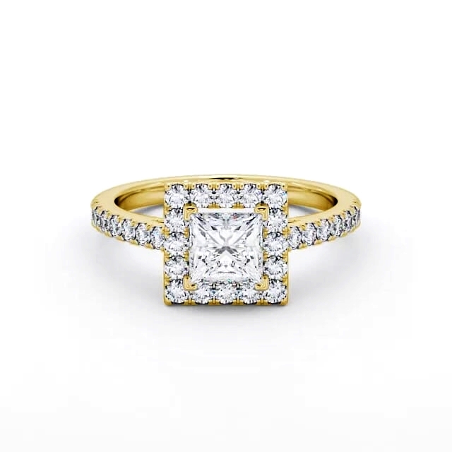Halo Princess Diamond Elegant Engagement Ring 9K Yellow Gold | Tabitha