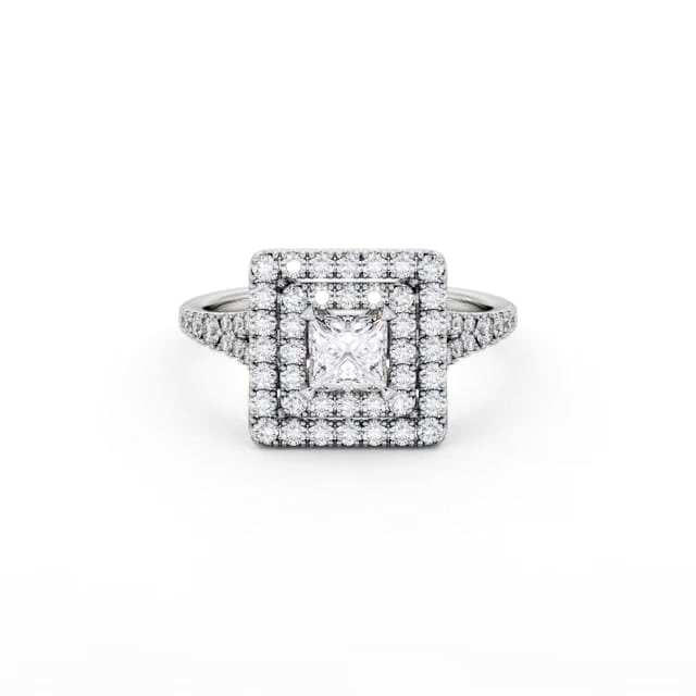 Double Halo Princess Diamond Engagement Ring Platinum | Christabel