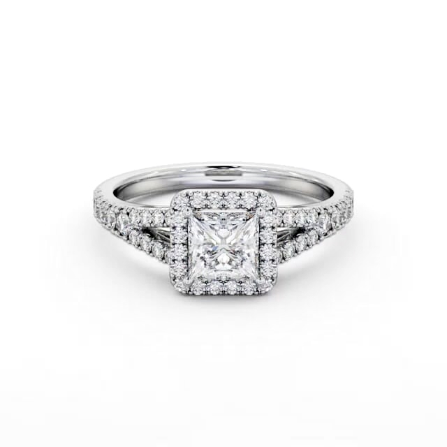 Halo Princess Diamond Split Band Engagement Ring Platinum | Mayla