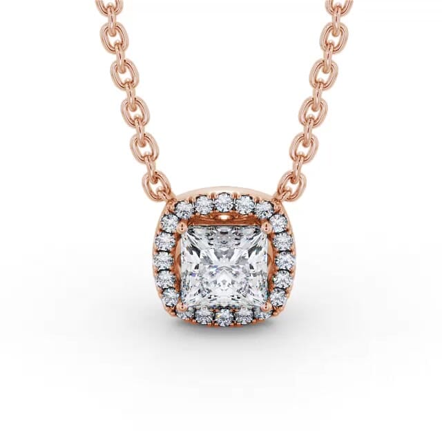 Princess Diamond with a Cushion Shape Halo Pendant 18K Rose Gold | Elma