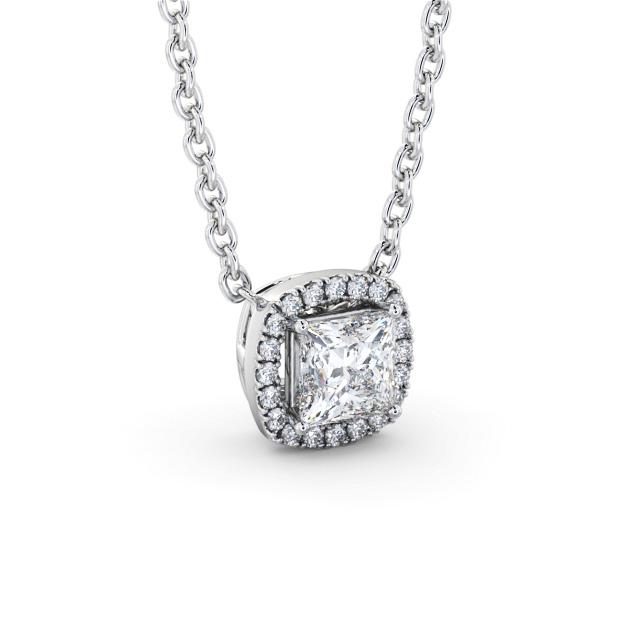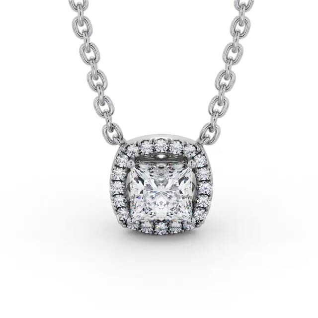 Princess Diamond with a Cushion Shape Halo Pendant 18K White Gold | Elma