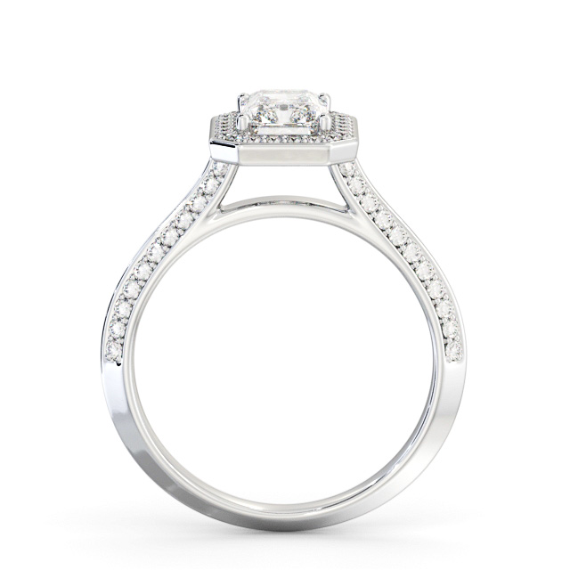 Halo Radiant Diamond with Knife Edge Band Ring 18K White Gold | Lamar