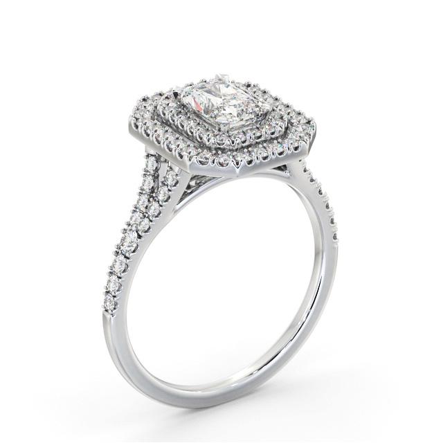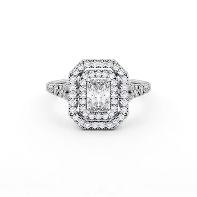 Double Halo Radiant Diamond Engagement Ring 18K White Gold | Sahari