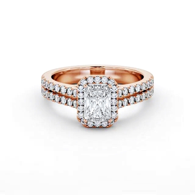 Halo Radiant Diamond Split Band Engagement Ring 9K Rose Gold | Kyra