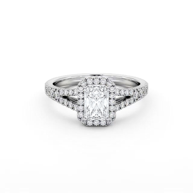 Halo Radiant Diamond Split Band Engagement Ring 9K White Gold | Harmonie