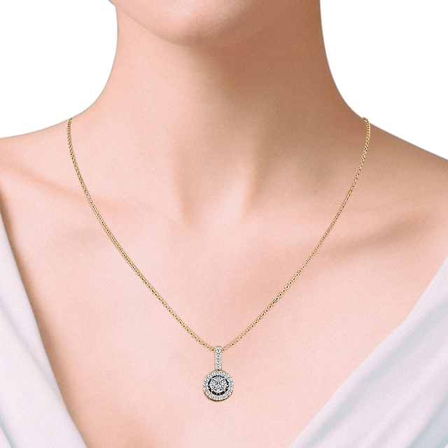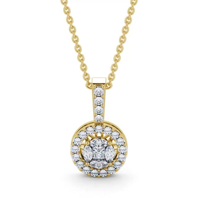 Halo Round Diamond 0.90ct Illusion Design Pendant 9K Yellow Gold | Kamea